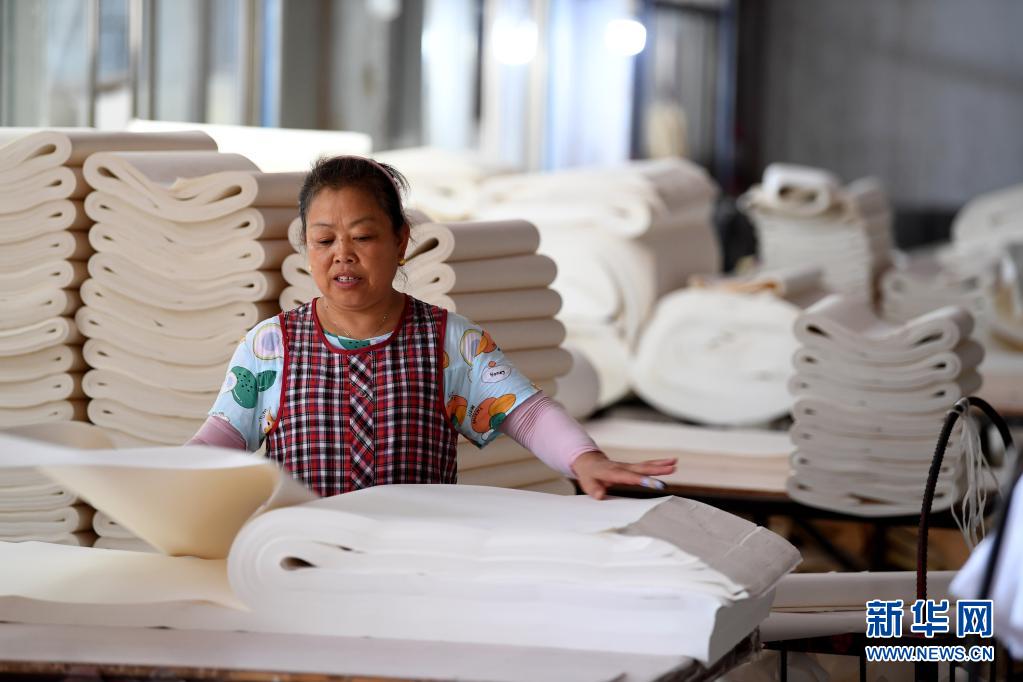 7月21日,在泾县丁家桥镇一家宣纸企业,工人进行检纸作业。新华社记者 韩旭 摄