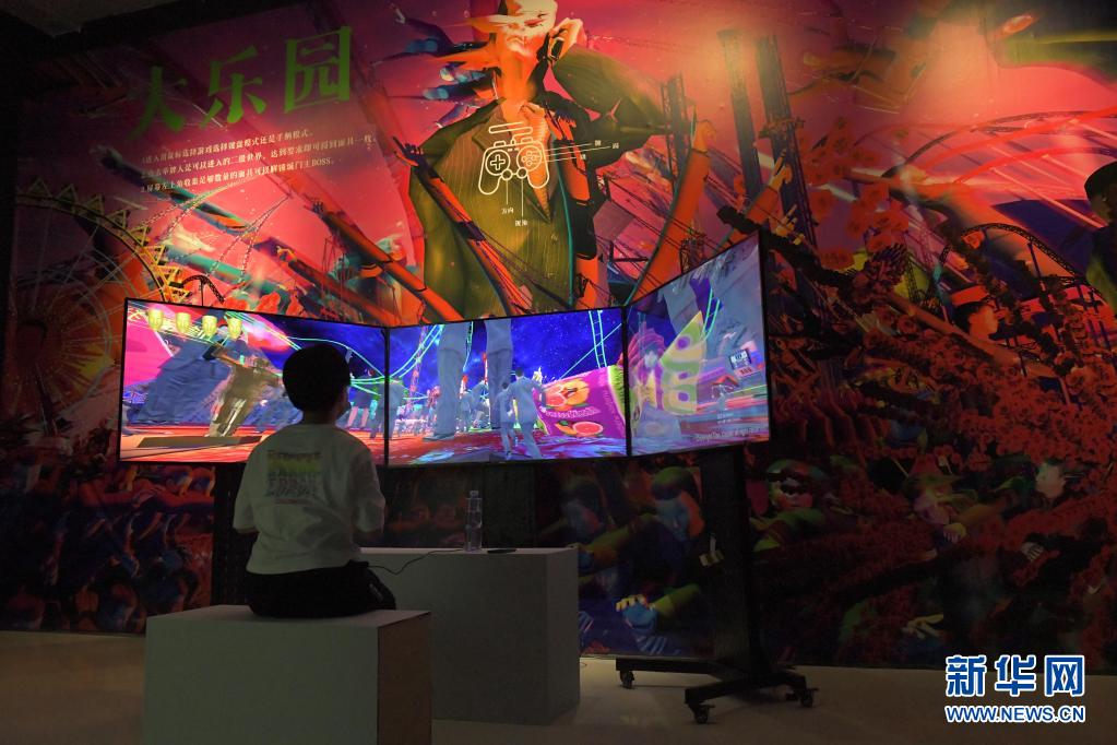 7月23日,在2021亚洲数字艺术展现场,观众体验数字艺术作品。