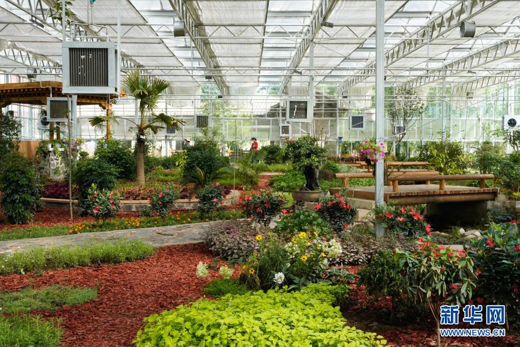 7月23日,工作人员在康巴高原植物园的玻璃温室展览馆内工作。