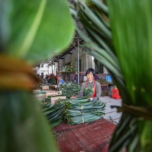 7月23日,在常宁市塔山瑶族乡狮元村,村民在采摘箬叶。新华社发(周秀鱼春摄)