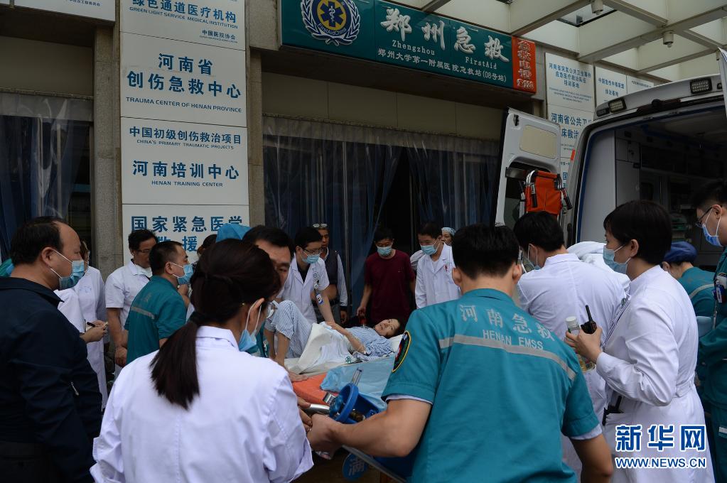 7月21日,郑州大学第一附属医院河医院区医护人员帮助患者转院。新华社记者 赵鹏 摄