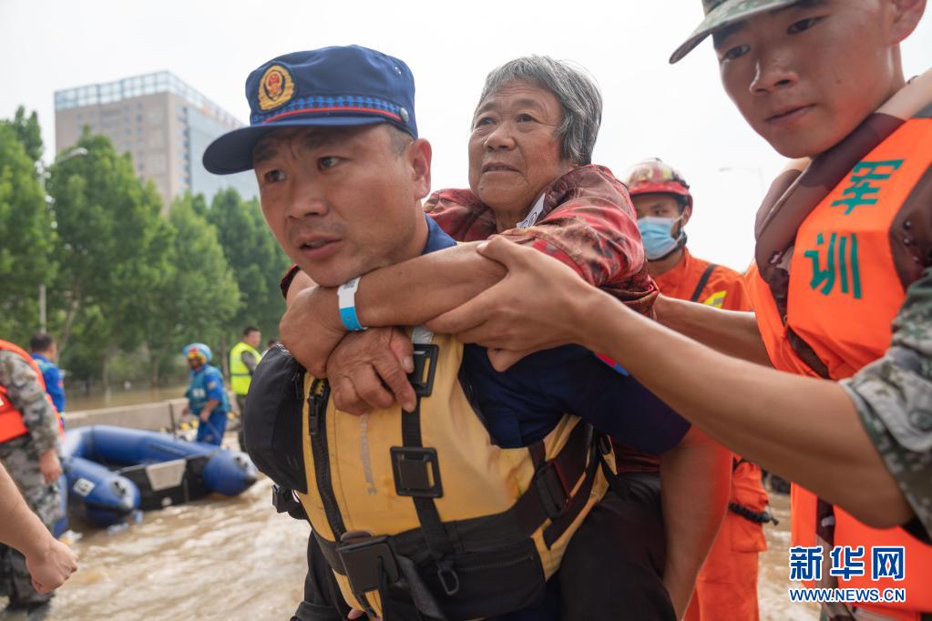 7月22日,在阜外华中心血管病医院附近的锦绣路与郑开大道交叉口,救援人员转移病患。新华社记者 才扬 摄