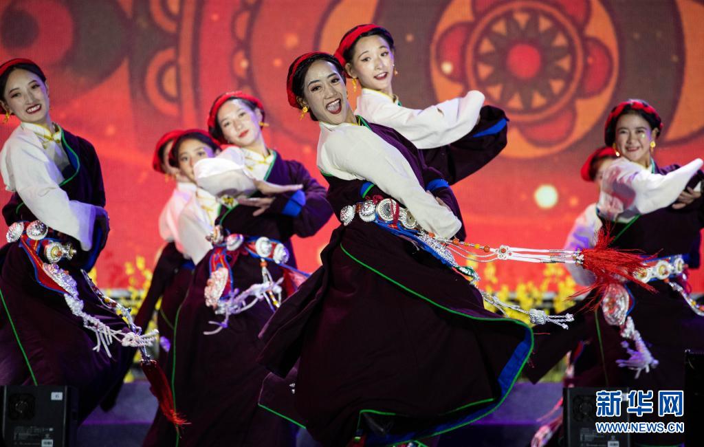 7月23日,在道孚县县城,演员们在舞台上表演。