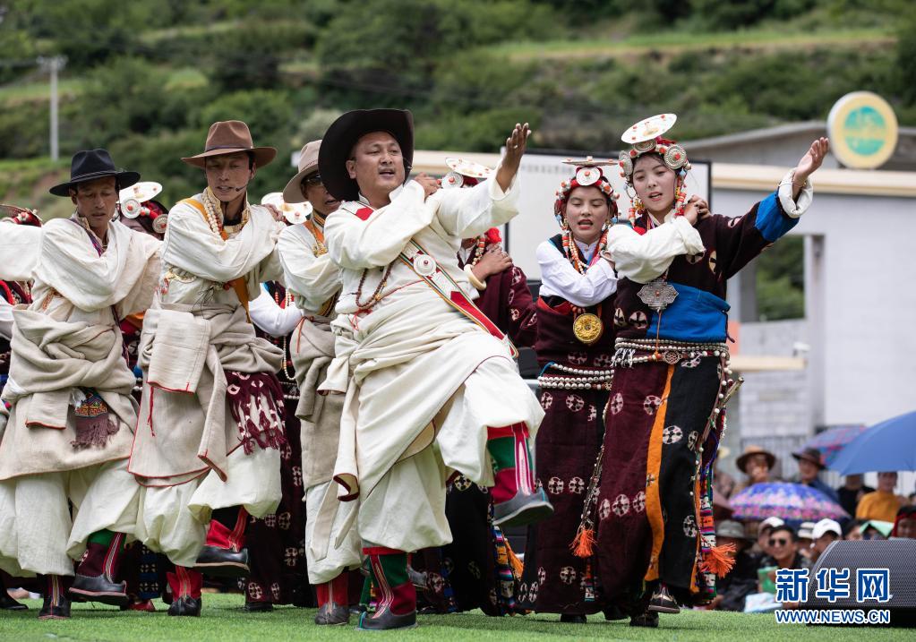 7月23日,在道孚县亚卓镇,当地藏族群众在跳舞。