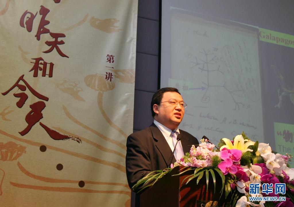 “时代楷模”“全国优秀共产党员”钟扬教授在上海科技馆举行的“上海科普大讲坛”上演讲(2009年2月10日摄)。