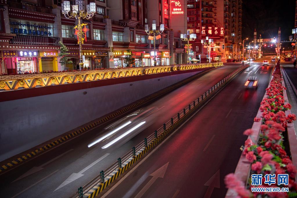 在昌都市卡若区城关镇,车辆行驶在道路上(3月25日摄)。