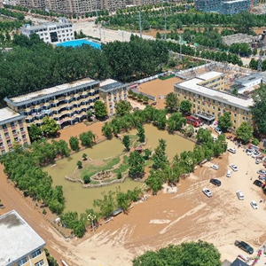 这是7月24日拍摄的淇县职业中等专业学校安置点(无人机照片)。