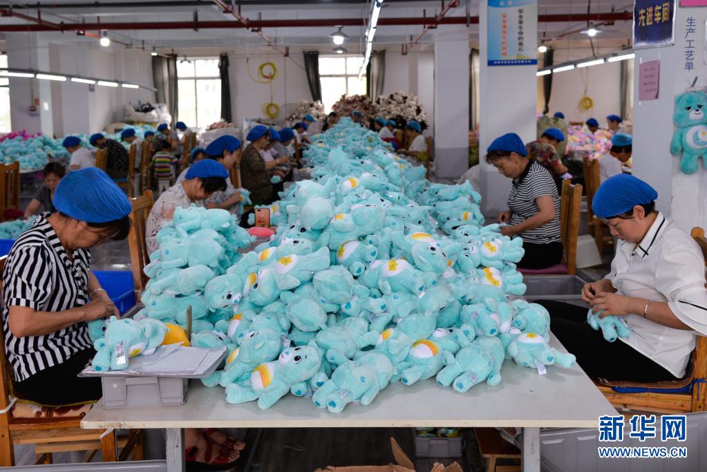 7月23日,工人在陕西省安康市恒安玩具有限公司的车间内工作。新华社记者 徐钦 摄
