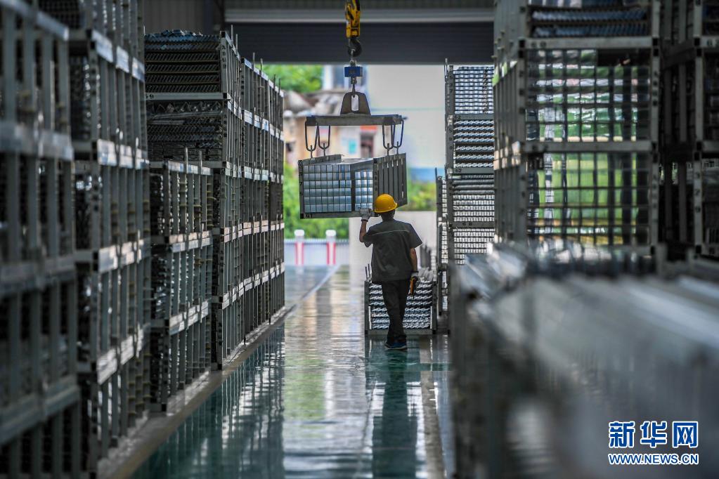7月23日,在贵州水城经济开发区,工人在贵州九衡铝业有限公司转运半成品。
