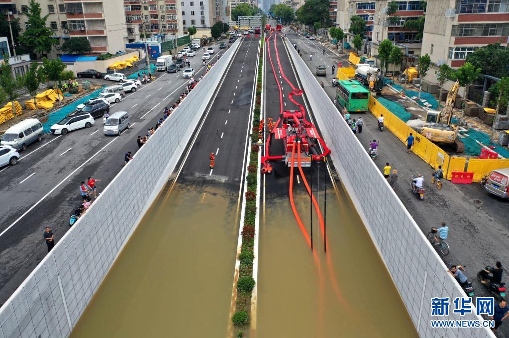 7月20日,受强降雨影响,河南郑州遭遇洪涝灾害。作为郑州重要的市内交通通道,暴雨过后的桐柏路下穿陇海路隧道严重积水。江苏消防救援总队徐州支队奉命连夜赶到,并迅速安装设备抽水排涝。
