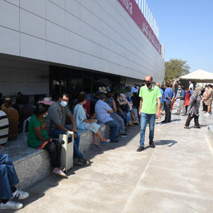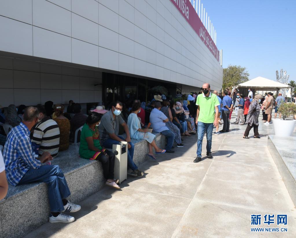 7月24日,人们在突尼斯首都突尼斯市一个新冠疫苗接种点外等待接种疫苗。