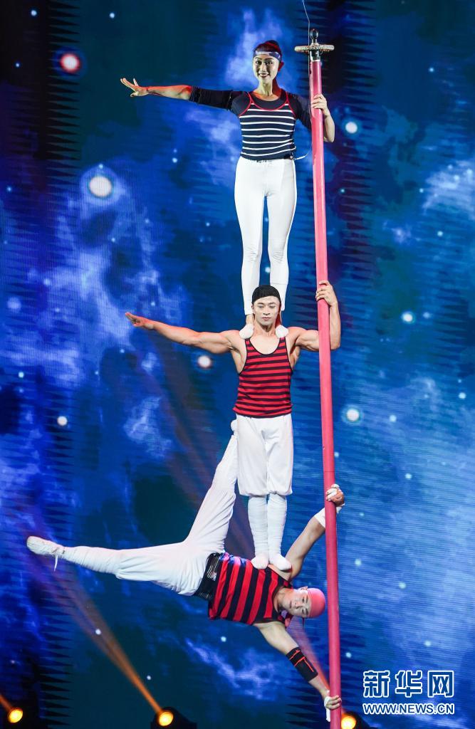7月24日,演员在表演杂技《九级浪——杆技》。