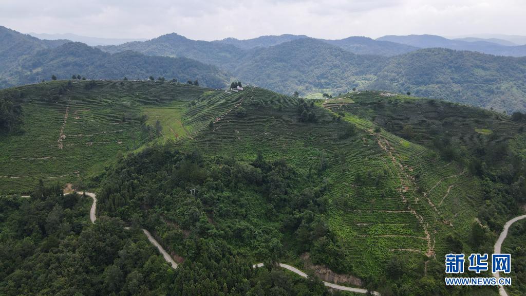 位于陕西省安康市平利县老县镇蒋家坪村的女娲凤凰茶业现代示范园区(7月24日摄,无人机照片)。