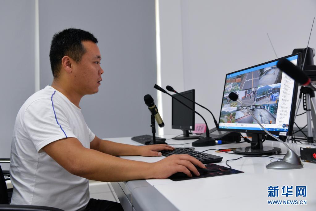 工作人员在陕西省安康市瀛湖风景区瀛湖智慧景区指挥中心查看景区监控(7月23日摄)。