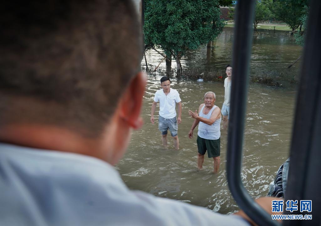 7月25日,李伟在跟居民交流,询问积水情况。新华社记者李安摄