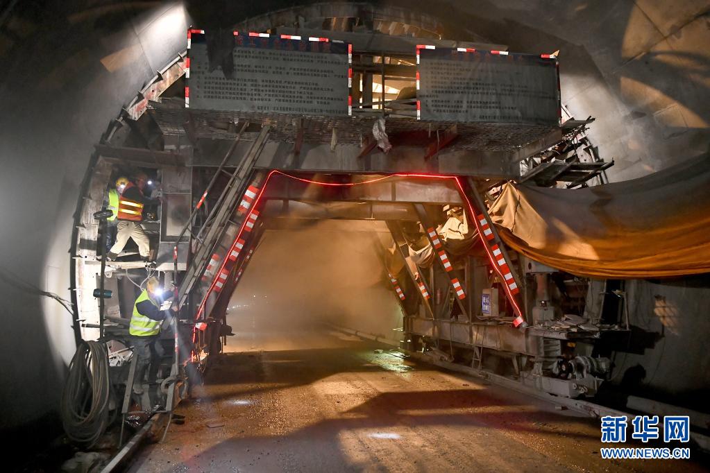 工人在夏贡拉山隧道内施工作业(7月24日)。新华社记者 李鑫 摄