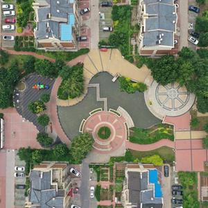 河北省迁安市一个完成改造提升工程的居民小区内扩建的游园(7月26日摄,无人机照片)。新华社记者 牟宇 摄