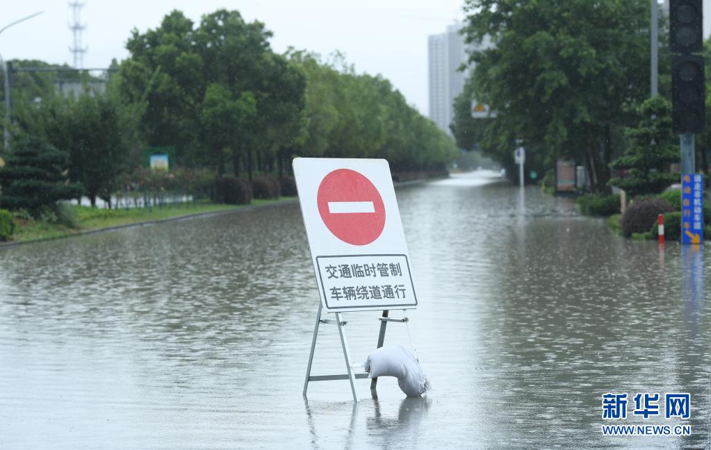 7月26日,宁波余姚市某积水路段竖起警示牌,提示车辆绕道通行。