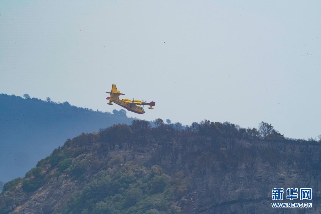7月26日,灭火飞机在意大利撒丁岛奥里斯塔诺参与灭火作业。