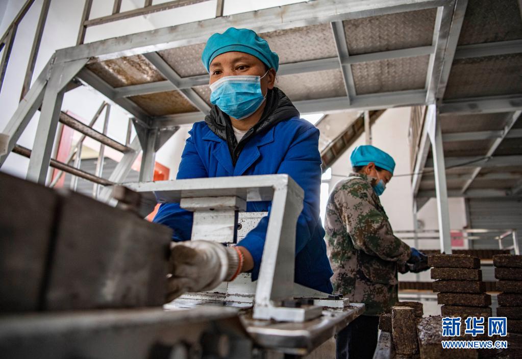 在易贡茶场,工作人员在制作砖茶(4月1日摄)。新华社记者 孙非 摄