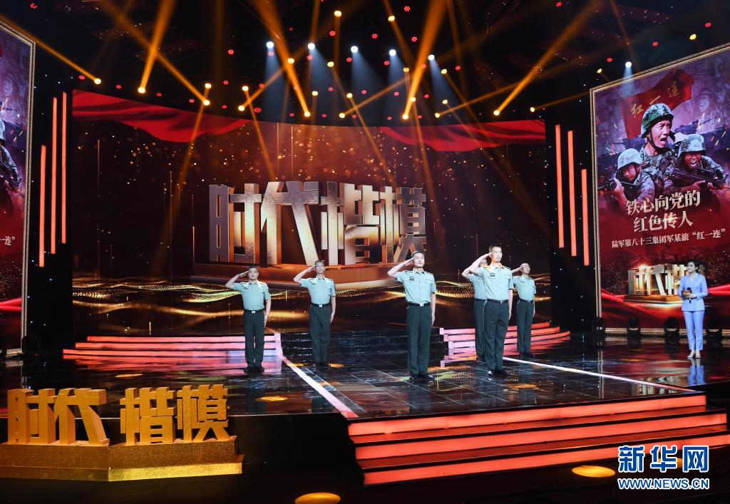 在“时代楷模”发布仪式上,陆军第八十三集团军某旅“红一连”官兵代表敬礼(7月23日摄)。新华社记者 张永进 摄