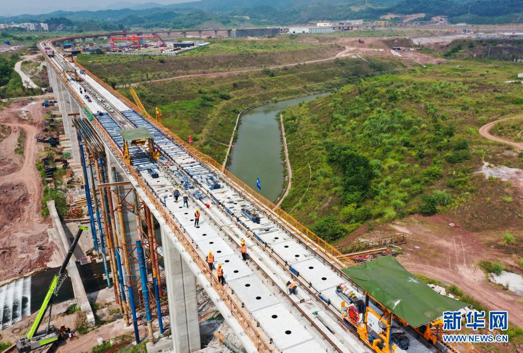 这是7月27日拍摄的重庆轨道交通4号线二期轨道工程项目施工作业现场(无人机照片)。