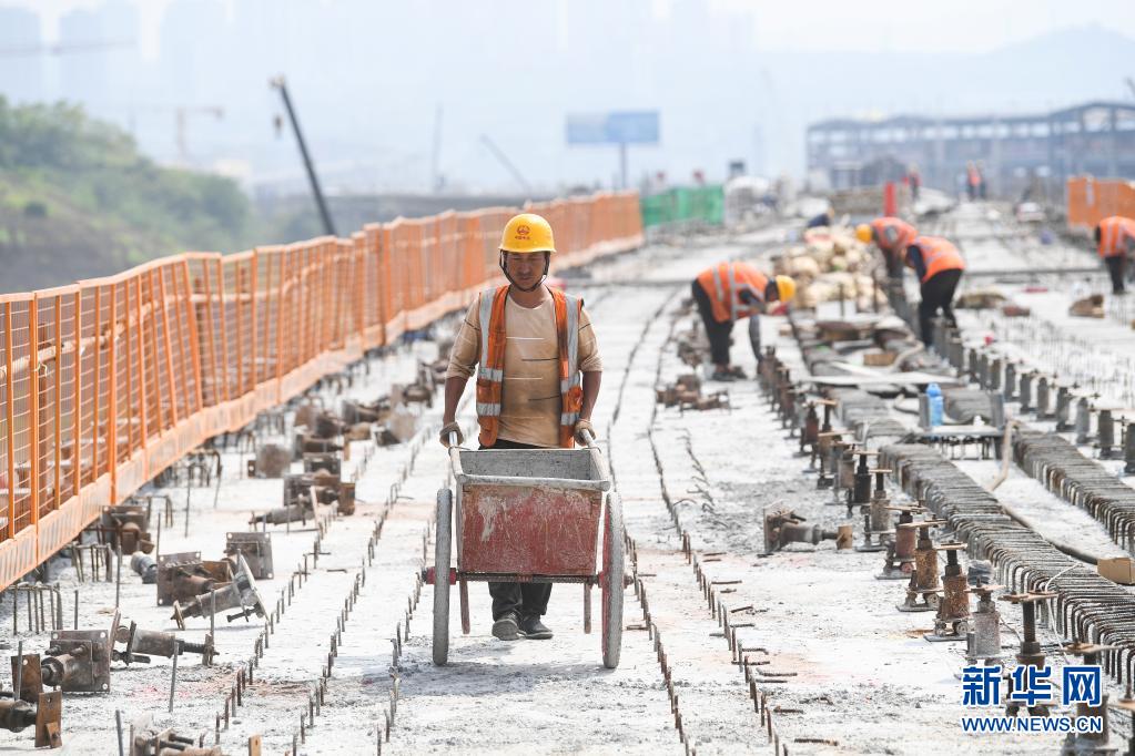 7月27日,工人在重庆轨道交通4号线二期轨道工程项目施工现场作业。
