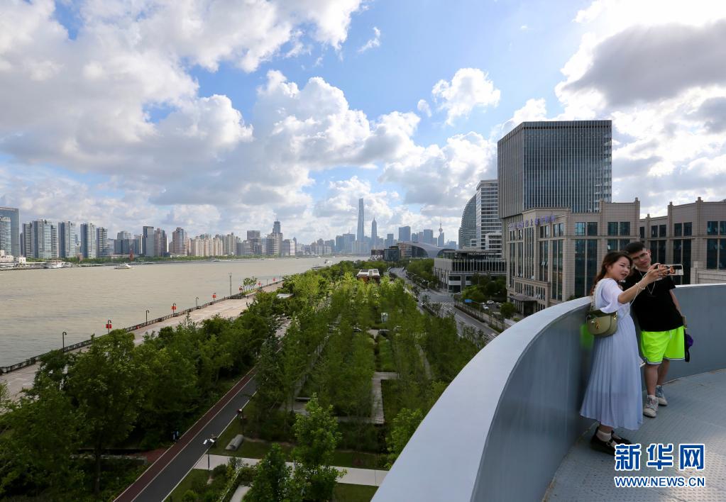 7月23日,游客在上海杨浦滨江“绿之丘”拍照。新华社记者 耿馨宁 摄