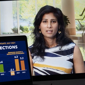 这是7月27日拍摄的国际货币基金组织(IMF)发布的《世界经济展望报告》中的2021年全球经济增长预期图表。 当日,国际货币基金组织(IMF)发布《世界经济展望报告》更新内容,将2021年全球经济增长预期维持在6%不变,但警告复苏步伐正加剧分化。 新华社记者刘杰摄