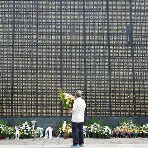 当日是唐山大地震45周年。连日来,许多市民来到唐山地震遗址纪念公园,在纪念墙前献上鲜花,缅怀地震罹难者。