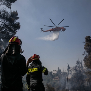 7月27日,一名消防员在希腊阿提卡州火灾现场作业。 当日,希腊阿提卡州发生山火,相关部门派出141名消防员参与扑灭工作。 新华社发(莱夫泰里斯摄)