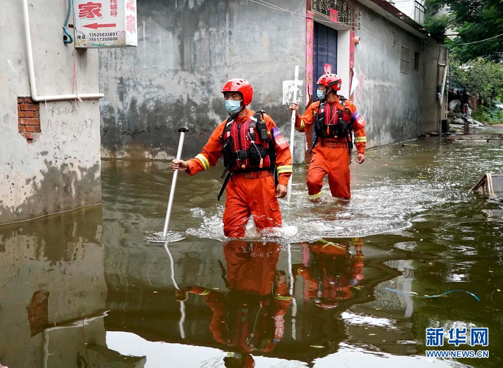 7月28日,消防救援人员在河南省卫辉市搜救被困人员。