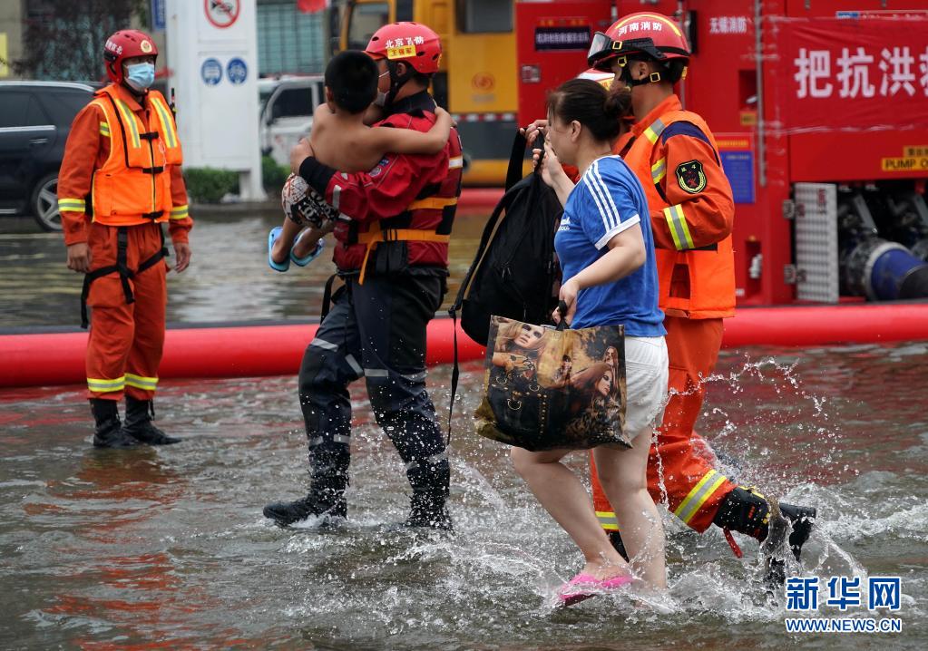 7月28日,消防救援人员在河南省卫辉市转移被困群众。