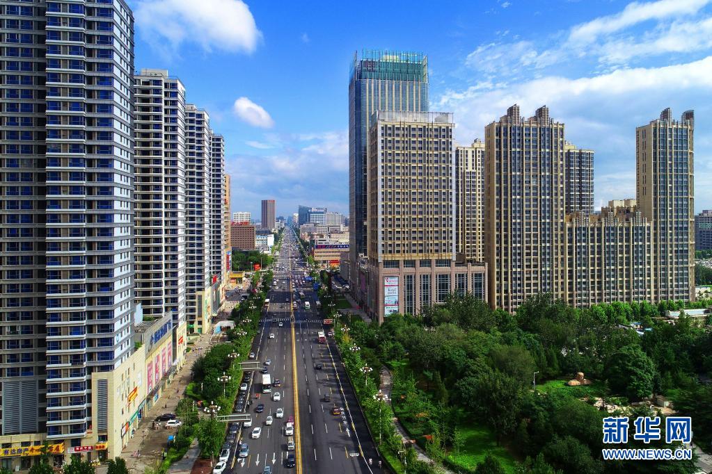 这是唐山市建设路街景(2018年8月15日摄,无人机照片)。