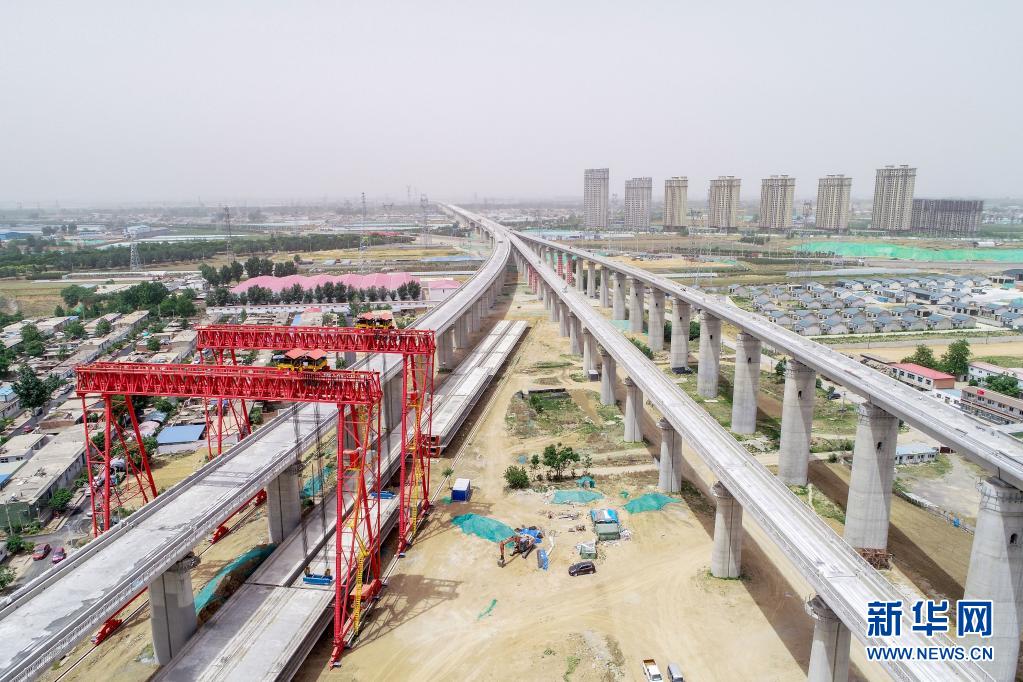 这是唐山市境内的京唐铁路七标段施工现场(5月23日摄,无人机照片)。