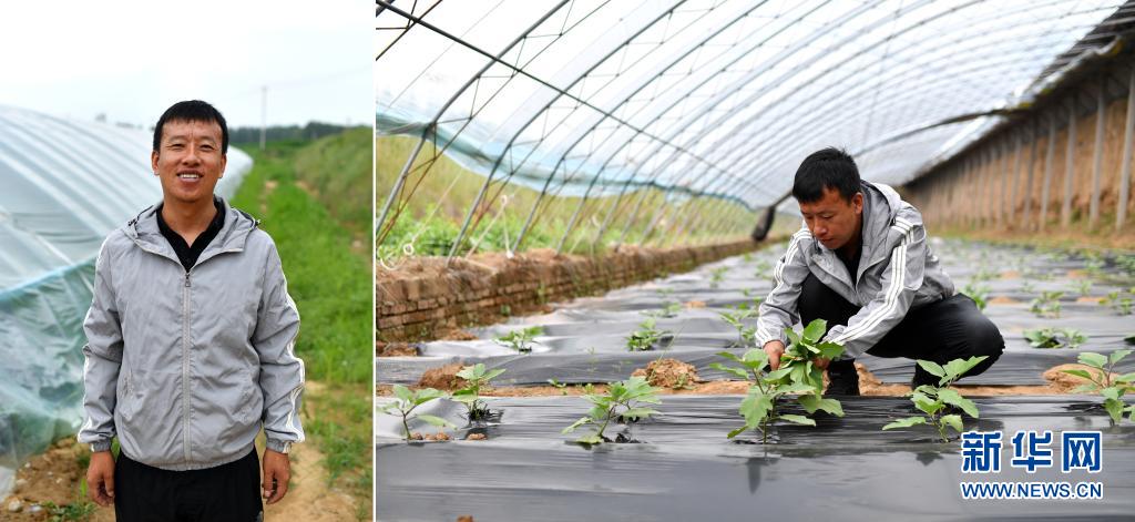 拼版照片:左图为赵立涛在蔬菜大棚外;右图为赵立涛在蔬菜大棚里忙碌(7月20日摄)。赵立涛是山西省阳曲县河上咀村人。2015年,在外打工多年的赵立涛带着积累的资金回到家乡创业,流转了188亩地发展蔬菜大棚产业和食用菌种植。赵立涛在对接超市的同时,开展“私人定制”服务,建立基地直供、集中配送的模式,把收获的蔬菜、水果等统一配送给需要的客户。