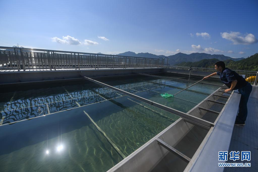 7月29日,在位于杭州市临安区龙岗镇龙井村的龙岗水厂,工作人员在进行日常巡查并清理净水池里的树叶。该水厂于今年全面投入使用,供水范围覆盖龙岗及周边10个山区镇街10多万农村人口,替代周边山乡单村水站140余座,保证了山乡百姓的饮用水供应。