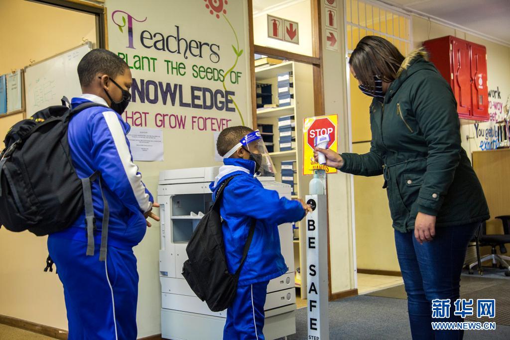 7月28日,在南非开普敦,学校工作人员为学生测量体温。新华社发(弗雷德·巴克 摄)