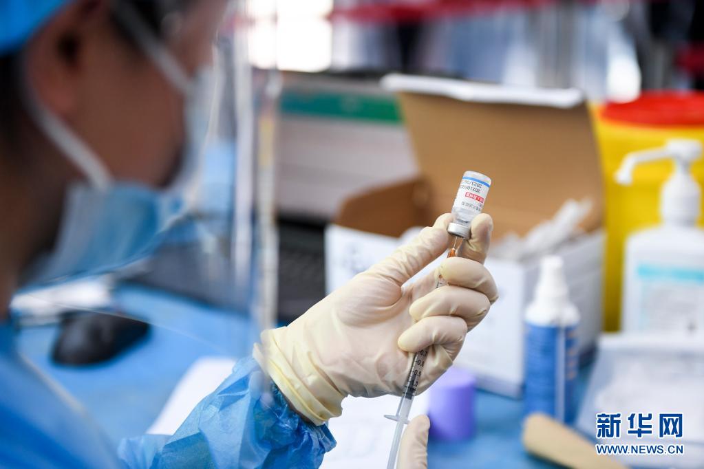 7月29日,在深圳福田外国语高级中学,医务人员在准备疫苗。