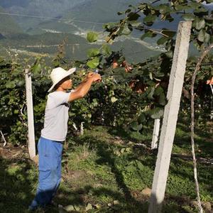 在西藏自治区林芝市察隅县下察隅镇京都村,猕猴桃园工作人员在修剪猕猴桃枝叶(7月22日摄)。京都村通过“公司+农户”模式引进了猕猴桃种植,帮助村民增收。