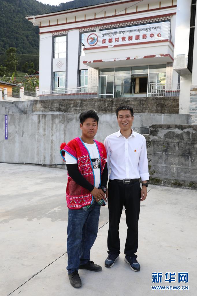 京都村党支部书记廖泽路(左)和驻村工作队负责人徐俊杰合影(7月22日摄)。