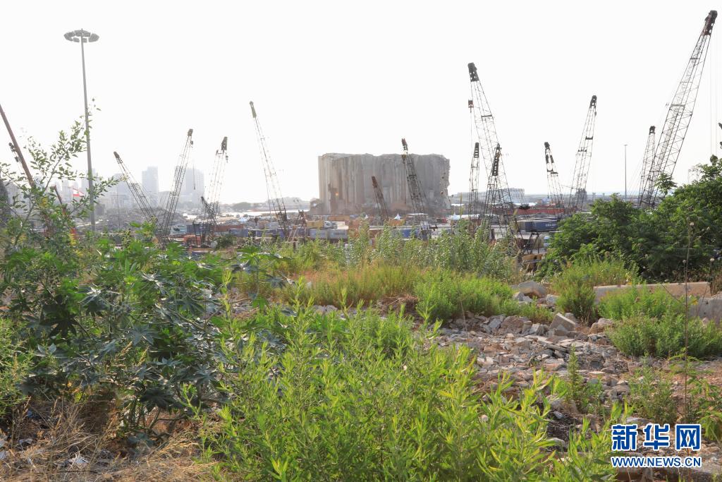 7月29日,在黎巴嫩贝鲁特,港口大爆炸废墟边上荒草萋萋。