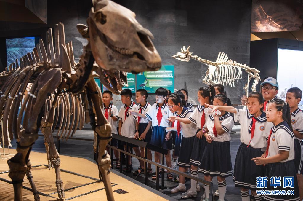 陕西省榆林市麻黄梁镇中心小学的学生在麻黄梁黄土地质博物馆参观(7月15日摄)。