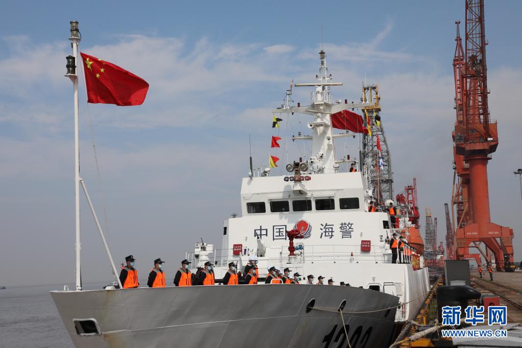 中国海警局“衢山舰”与“海门舰”组成的舰船编队准备起航(7月30日摄)。
