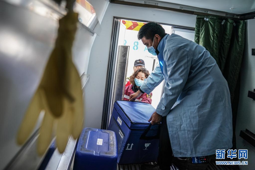 7月22日,在四川甘孜州疾控中心,工作人员将疫苗搬入当地的冷链车。