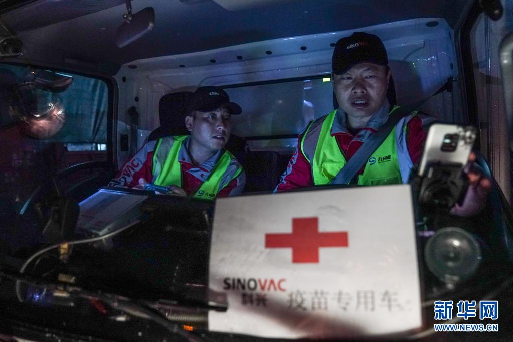 7月21日凌晨,在河北保定服务区休息后,司机芦艳会(左)与刘思交换驾驶位置,并计划下一步行车路线。