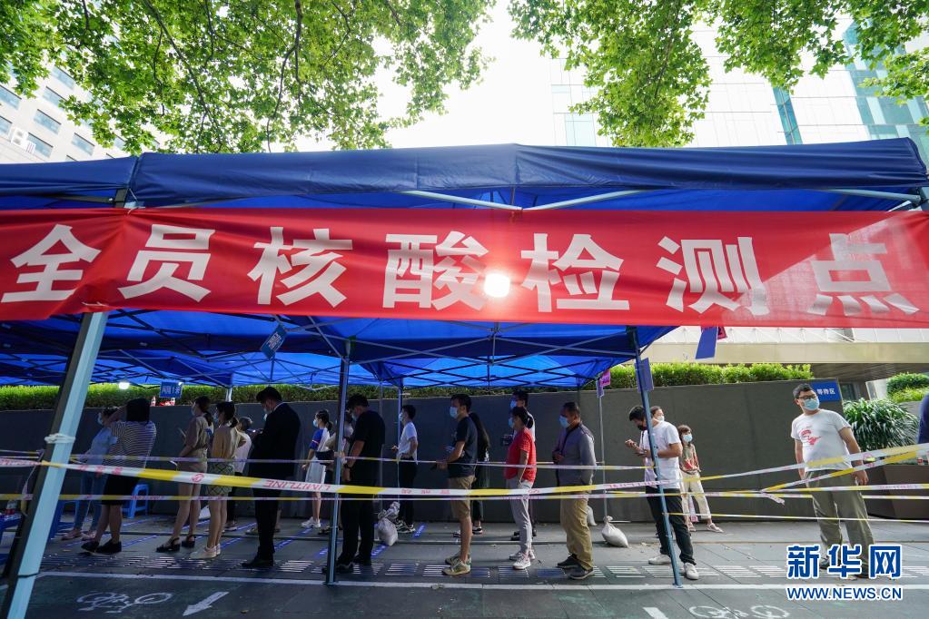 7月29日,市民在南京市玄武区新街口街道北门桥社区核酸检测点排队,准备进行核酸检测取样。新华社记者 李博 摄