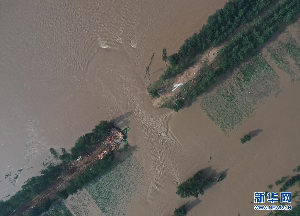 这是7月23日拍摄的卫河鹤壁市浚县新镇镇彭村段的决口处(无人机照片)。新华社记者 张浩然 摄