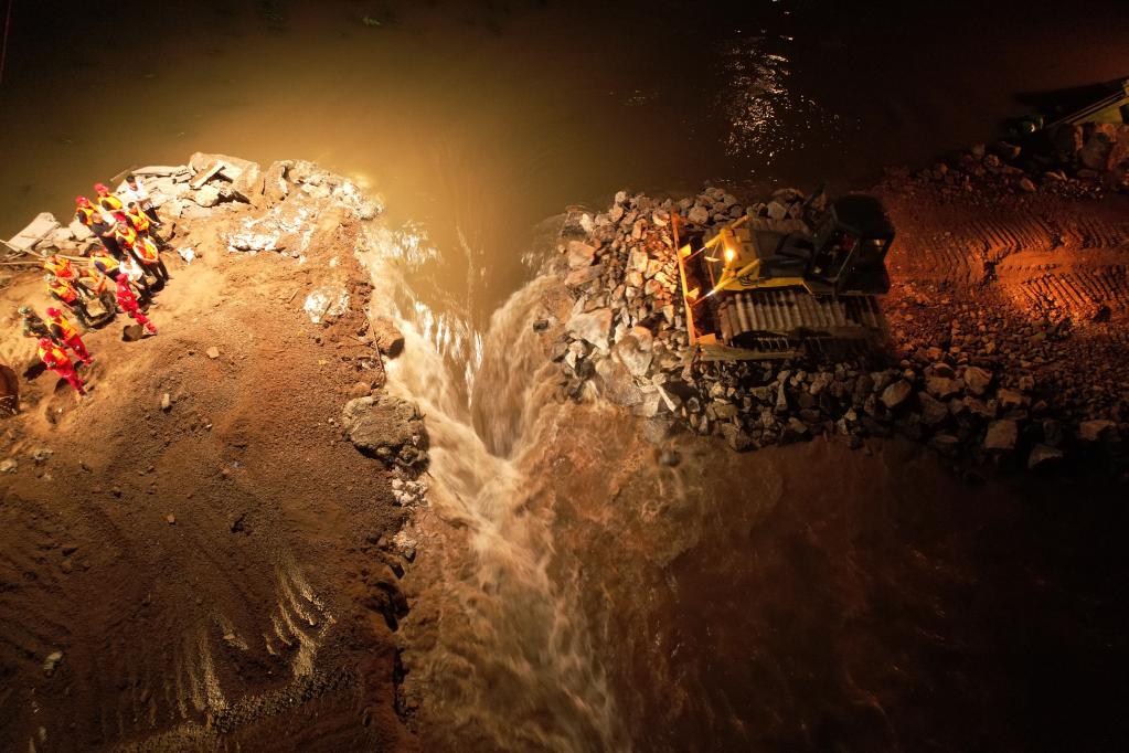 受持续性强降雨影响,卫河河南省鹤壁市浚县新镇镇彭村段发生决口。经过救援抢险人员70多个小时的持续奋战,卫河彭村段决口于7月26日2时27分成功封堵。