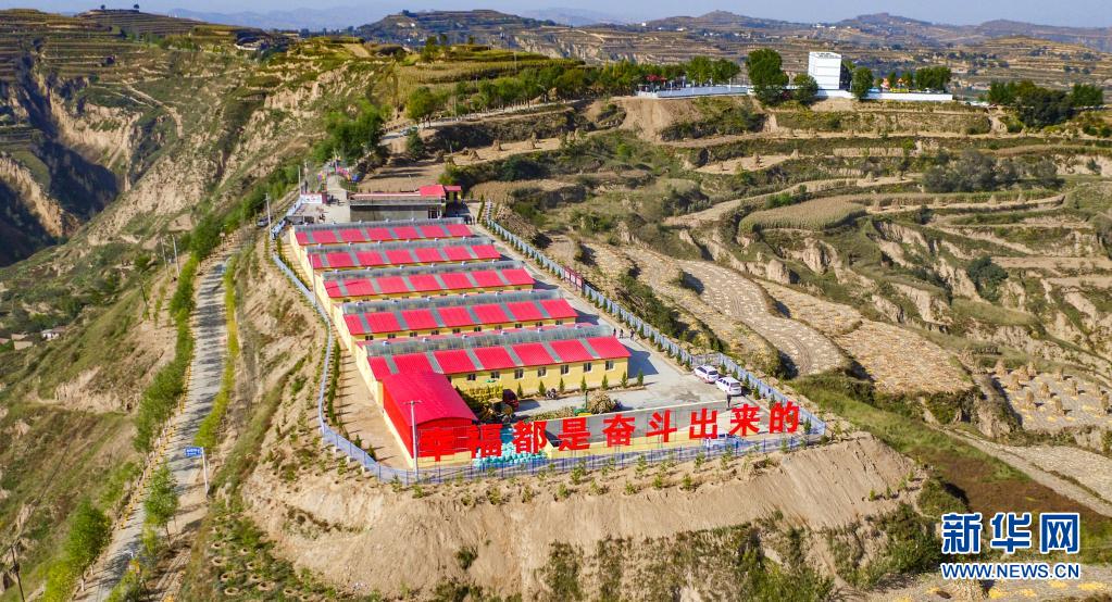 这是武警甘肃总队、天津总队为甘肃省广河县齐家镇魏家咀村援建的产业扶贫养殖基地(无人机照片,2018年10月11日摄)。